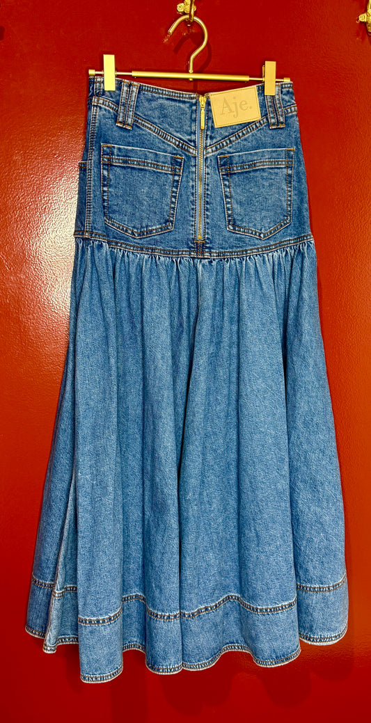 Aje Belmond Denim Midi Skirt 6 90s Wash