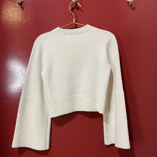A.L.C. Cream Cropped Wool Sweater with Bell Sleeves XS