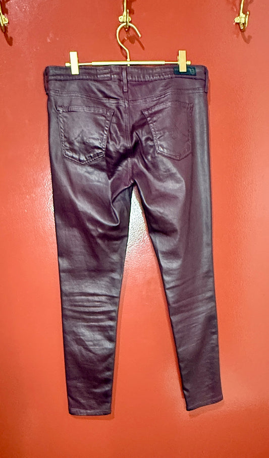 AG Super Skinny Ankle Burgendy Coated Jeans 29
