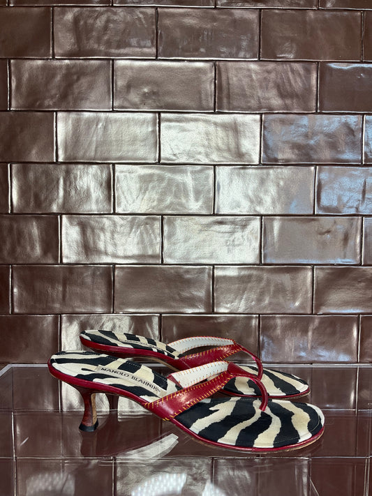 Zebra/Red Kitten Heel Manolo Blahnik 38 1/2