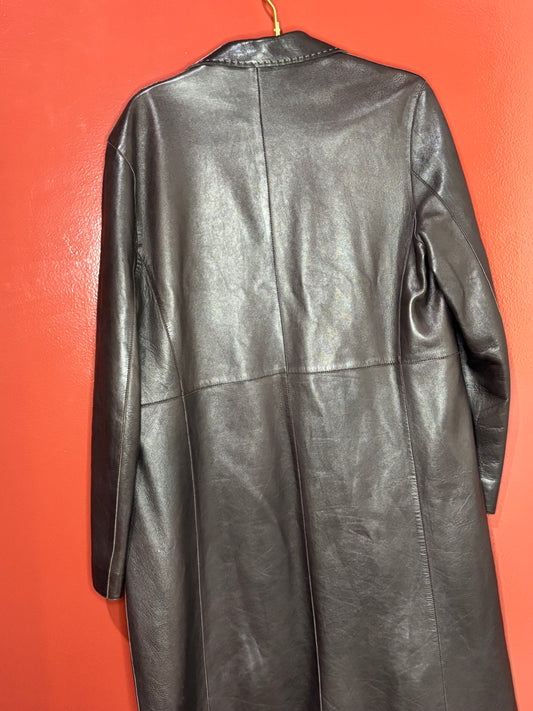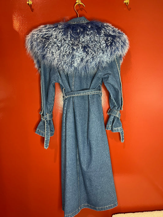 Long Denim Trench W/ Mongolian Sheep Fur Collar S/M