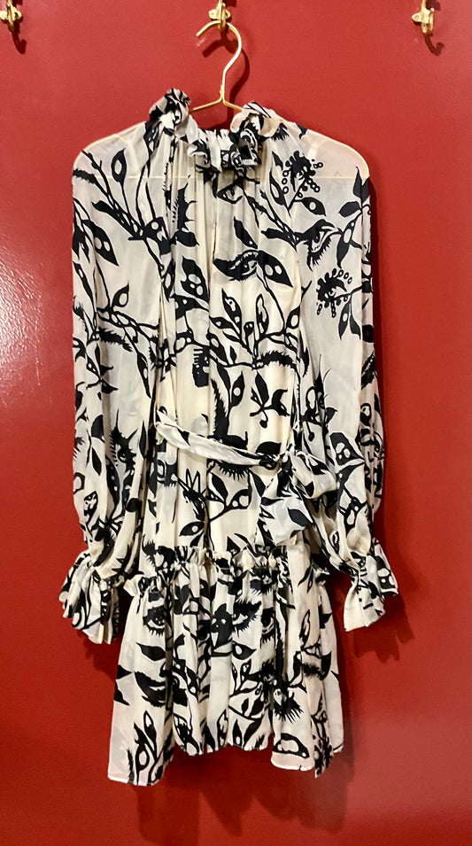 Zimmerman Sheer Dress Blk&Wht W/Tie 0