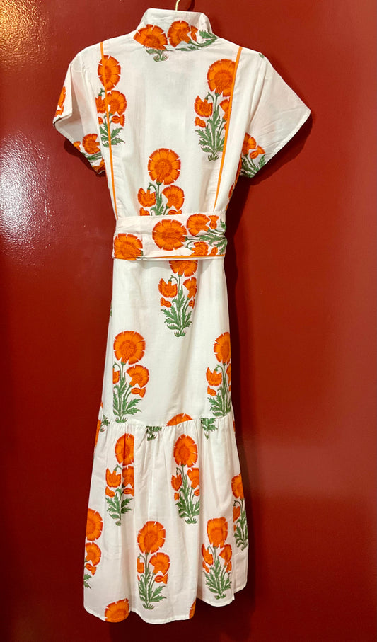 Victoria Dunn Orange Floral Long Dress XS