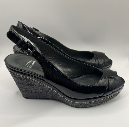 Stuart Weitzman Black Patent Leather Sling Back Heels 7 1/2