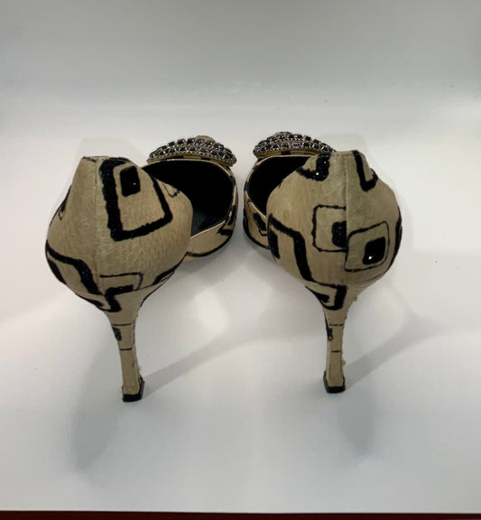 Manolo Blahnik Beige & Black Heels 36 1/2