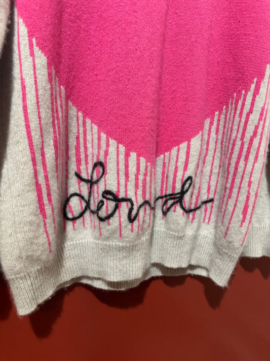 Kerri R Cashmere Grey Pink Heart Sweater S