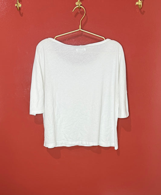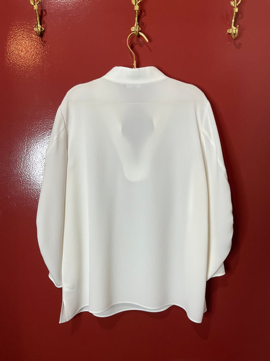 Lafayette 148 White Bracelet Sleeve Popover Blouse XL