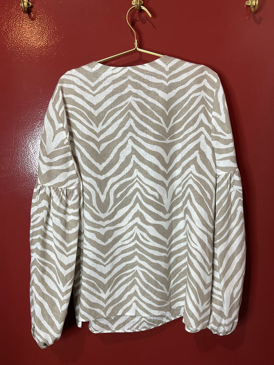 Lafayette 148 Taupe Zebra Bracelet Sleeve Popover Blouse XL
