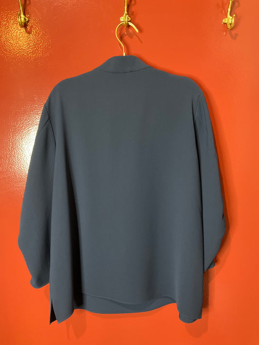 Lafayette 148 Navy Bracelet Sleeve Popover Blouse XL