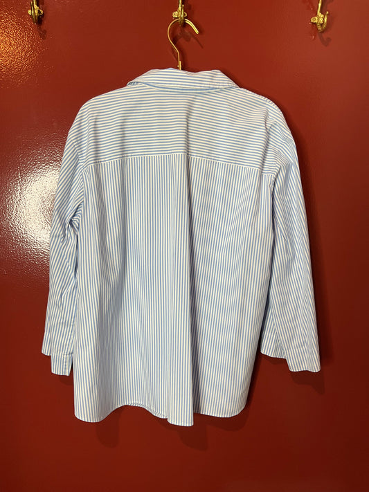 Lafayette 148 Blue/White Stripped Bracelet Sleeve Popover Blouse XL