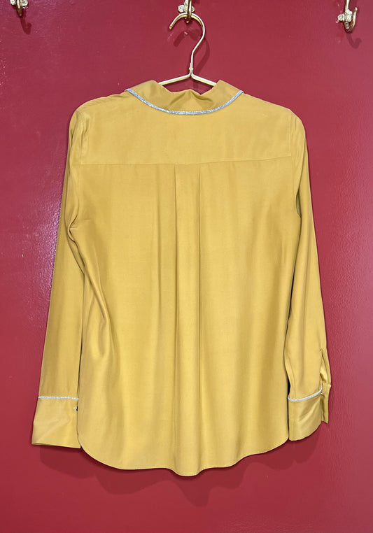 Lafayette 148 Mustard Silk Beaded Collard Button Down XS