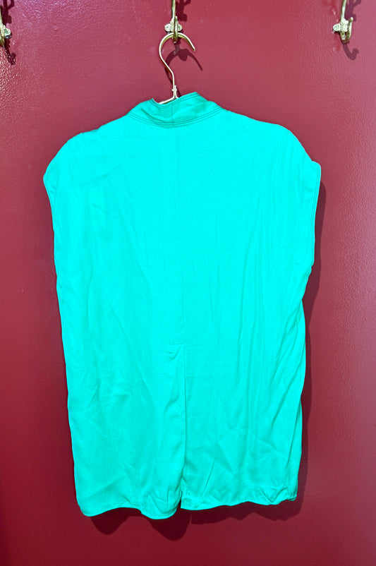 Sandro Green Silk Sleeveless Tie Neck Top L
